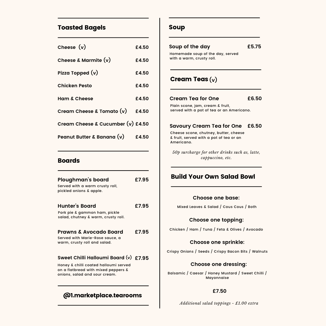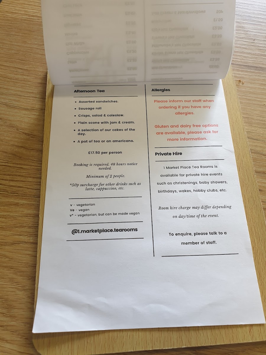 Welcome to 1 Market Place Tea Rooms, the charming café nestled in Arnold, Nottingham. This delightful spot offers a menu that beautifully balances tradition and innovation. Start your day with simple yet satisfying breakfast options, like Avocado on Toast or a classic Toasted Tea Cake. The tea selection is impressive, featuring blends from English Breakfast to unique flavors like Rhubarb & Ginger and Strawberry & Mango, each priced at a pocket-friendly £2.00.